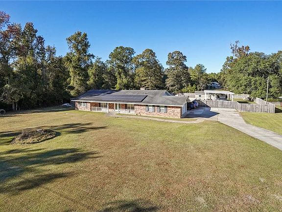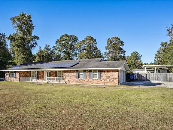 Beautiful country setting on a lot over an acre big. Lot is 28 ft above sea level leaving you high and dry and in a no flood zone. Features formal dining, large den, and separate living room. have gatherings around the fireplace and enjoy the winter nights. Huge covered patio. Attached 2 car garage and carport. Workshop behind the RV parking area that is actually another 1 car garage. Recently added an RV covered area. Ample storage throughout home. Home generator and tankless hot water heater. Solar panels on the home are owned by the seller. Great entergy savings