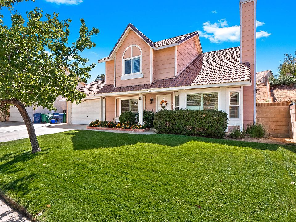 Beautifully upgraded pool and spa home in west Palmdale! This home has beautiful wood flooring upstairs and downstairs. The kitchen has been upgraded with stone counters, new cabinetry, and new appliances. There is a built-in office space in the kitchen as well! The upstairs bathroom is newly renovated with a gorgeous vanity and tile shower. The living room is cozy with a brick fireplace and a custom shiplap wall. The backyard is an entertainers dream with a newly rebuilt patio cover and oversized pool and spa. The home has central AC and an evaporative cooler. This home is will sell FAST! Hurry and make your appointment today!