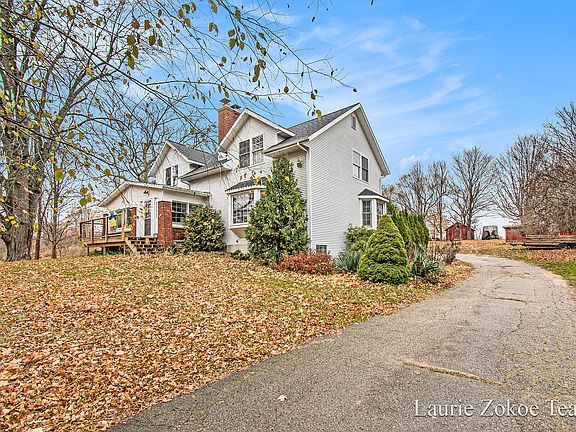 This inviting farmhouse sits on nearly 5 peaceful acres in Byron Center, offering the space and simplicity that make country living feel truly special. Inside, the beautifully updated kitchen features granite countertops, cherry cabinetry, new flooring, and a tile backsplash, flowing into both a cozy dining area and a formal dining room warmed by a dual-sided fireplace. With 4 comfortable bedrooms, 2.5 baths, and a primary suite complete with a jacuzzi tub, the home blends comfort and charm throughout. The daylight basement, complete with a woodstove, adds a spacious family room perfect for movie nights, gatherings, or everyday relaxation. But what truly sets this property apart—and what the seller loves most—is the incredible barn and outbuildings. This barn isn't just storage; it's a space full of possibility. Whether you imagine a workshop, a place for animals, room for equipment, space for hobbies, or simply a quiet retreat to create and tinker, this property supports it all. The combination of open land and functional structures offers a lifestyle that's hard to find and impossible to replicate. Expansive acreage, a meaningful barn, and a welcoming farmhouse come together to create a property where memories are made and dreams can grow. Come experience all it has to offer!