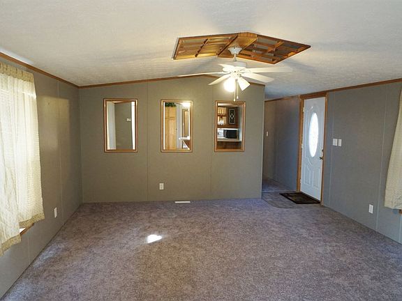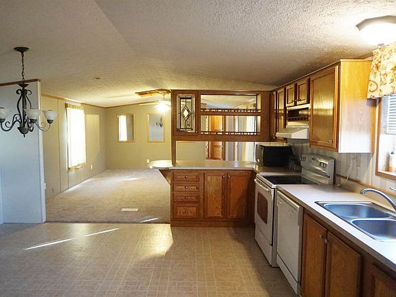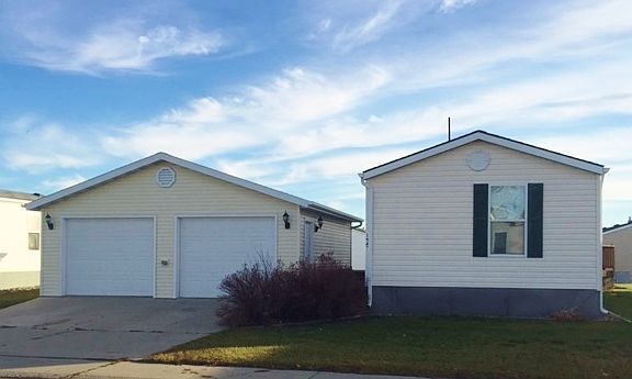 Super clean mobile home in a nice park location! This 3 bedroom, 2 bath home with new carpet and paint is move in ready. The living room, kitchen and dining room are open giving a full view of your surroundings. The dining area has a glass door that leads to a nice outdoor deck that is perfect for grilling. The kitchen and living share a built in hutch/desk. Are you looking for lots of kitchen cabinets? You got it! Two large pantries make this kitchen unique. A laundry room with storage and a backdoor are off of the kitchen. The master bedroom features a soaking tub, large vanity and walk-in closet. Two more bedrooms grace the opposite end of the home with another full bath and a built in storage cabinet at the end of the hall. The double detached garage is heated and insulated with lights and a garage door openers. The home sits on a large lot. Dont miss this one!!