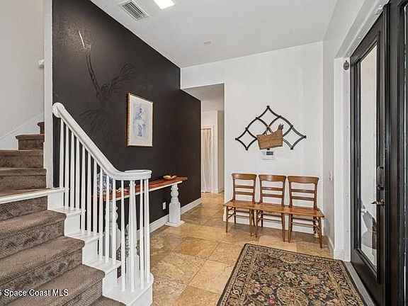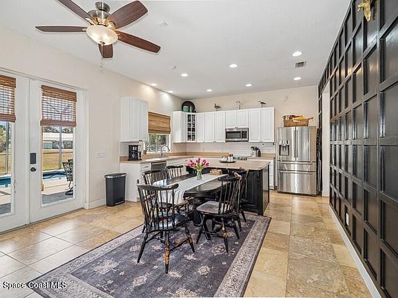 This well-appointed home sits on 0.63 acre, 2,474 square feet of living space and river views. The property features a tranquil in-ground screened saltwater pool, soothing spa & waterfall, and Baja shelf. Lanai provides ample space for relaxation and outdoor entertaining. The kitchen is equipped with stainless steel appliances, center island, and built-in storage and feature wall. Kitchen views pool with peek-a-boo river views, complementing the farmhouse-inspired style throughout the home. Off the kitchen the office has transom windows, sliding barndoors, and French doors to the pool and private side entrance. The office could be a fourth bedroom or formal dining room. The primary bedroom boasts river views, an en-suite bathroom with a soaking tub and a walk-in rain shower, as well as a sitting area, providing a private oasis. Two additional bedrooms and a full bathroom complete the interior. The home also has a butler pantry and laundry room seamlessly blending a timeless style.