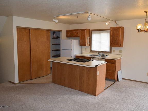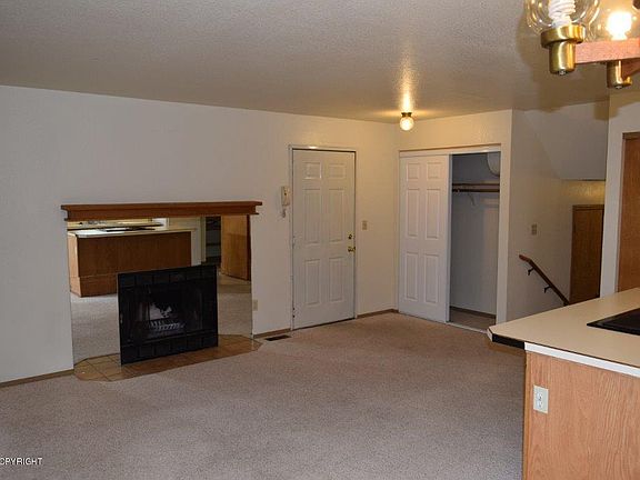 Bright & sunny unit with lots of space, secure entry, 2 bedrooms, 1.75 bathrooms, Pantry in kitchen, island cook top, Fireplace, deck, W/D in unit, Shared Garage, storage locker and more. Great location close to JBER, schools, shopping, trails and more. NO PETS