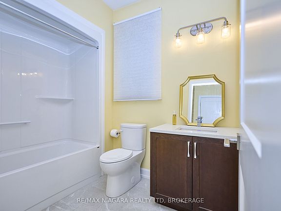 FOR LEASE: A signature 2-bedroom, 2-bathroom freehold bungalow end-unit townhome in the desirable Black Creek area of Fort Erie with no rear neighbours. Built by multi-award-winning Rinaldi Homes, this upscale home is just a minute from the Niagara River and the scenic Niagara Parkway Trail, perfect for walking, running, or cycling. The exterior features premium stonework and James Hardie siding and shakes, while the interior offers a bright, open layout with 9ft ceilings, quartz countertops, stainless steel appliances, a walk-in pantry, and a main-floor laundry room with use of a washer and dryer included. The great room opens to a 12'10" x 10' covered rear deck overlooking peaceful green space. The spacious primary bedroom includes a walk-in closet and 4-piece ensuite, while the second bedroom is ideal for guests or a home office. The high-poured basement (8'4" foundation height) is a clean slate, offering ample room for a future rec room, office, and includes rough-in for a 3-piece bathroom. Additional highlights include a landscaped and sodded front yard with garden plantings, interlocking brick driveway, a double-car garage with an automatic opener, and a rough-in conduit for an electric vehicle charger. Comfort is enhanced with a Carrier high-efficiency furnace, central air, and Ecobee smart thermostat. Located close to the QEW for easy access to Niagara Falls, Toronto, Fort Erie, and the Peace Bridge to Buffalo, this move-in-ready townhome offers quality, style, and convenience in one of Fort Erie's most sought-after communities. $2600/month rent plus utilities
