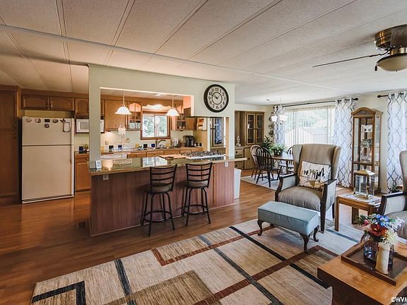 Accepted Offer with Contingencies. Double lot with 3 bed, 2 bath manufactured home just a couple blocks away from the Santiam River and Waterloo Campground! Corner lot is fenced with beautiful landscaping, a 12x24 shop with 7x24 lean-to, garden shed, pear & apple trees, grapes, well and septic. Step inside from the wonderful covered deck into a spacious open floor plan with, propane range, large center island, lots of cabinets and built-ins, inside laundry, walk-in shower in master bed. Seller said "Great Neighbors too".