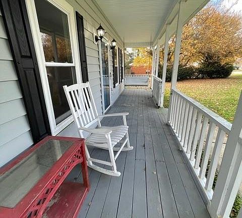 Wooden over-sized deckRocking chair front porchHardwood flooringFresh paintSpacious bedrooms