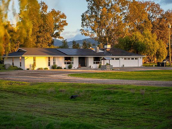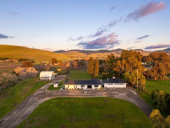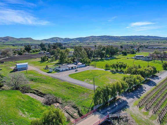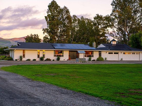 Nestled among picturesque rolling vineyards, this stunning 5-acre farmhouse property beautifully combines charming farmhouse aesthetics with modern elegance. Enclosed by a classic white picket fence, it provides a peaceful retreat just a short drive from Downtown Livermore. Step through grand double doors and let sunlight fill the space through expansive sliding glass doors, revealing breathtaking views of Livermore’s hills. The heart of the home is an updated farmhouse kitchen featuring elegant quartzite countertops, a spacious peninsula, and a classic deep farmhouse sink. The thoughtful layout includes a serene primary suite as a retreat, with additional bedrooms placed on the opposite side for privacy. Luxurious updated bathrooms with double vanities add to the charm. The 3-car garage features a flex room, perfect for an office, gym, or art studio—whatever your heart desires! Outdoors, enjoy weekends on your own dirt bike track, honing your skills on the mound, or testing your aim at the axe-throwing station. A charming two-story barn offers ample storage, and a delightful play structure provides endless fun for little ones. With owned solar and a private well, this home is not just beautiful; it's efficient, too—perfect for embracing a vibrant lifestyle.