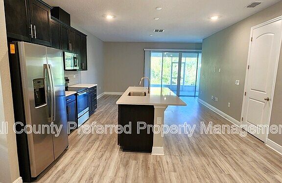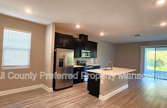 This beautifully maintained 3 bed/2bath house is located in the great community of The Estates of Southern Pines. Located off of Nolte Rd. in St. Cloud, this home is located to plenty of options for grocery stores, restaurants, entertainment, and shopping. Located a short drive from the popular Lake Nona area, easy access to the Orlando International Airport, the beaches of Brevard County, and a popular area with lots of growth. The community has a community pool and a playground. The house has a split bedroom layout with ceiling fans and carpet in the bedrooms and luxury vinyl plank flooring throughout the living areas. The kitchen has a large island and breakfast bar for enjoying the kitchen and spacious living room. Stainless steel appliances and quartz countertops. The master bedroom has a double sink, a large walk-in shower, and spacious walk-in closet. There is a laundry room with washer/dryer available for use by the tenant. Lawncare is provided, so just enjoy the house!