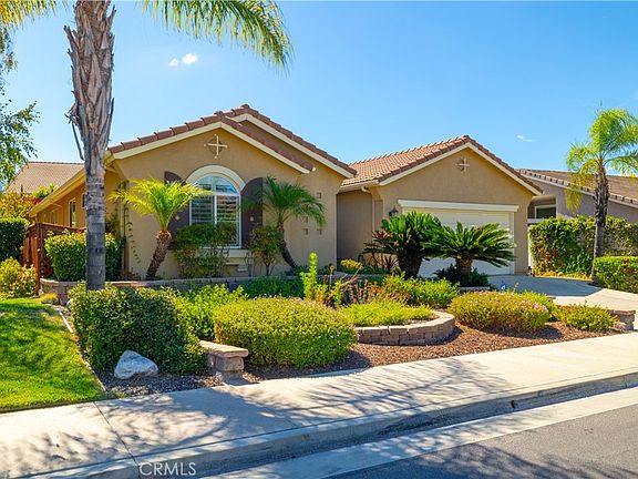 Welcome to 39483 Almaden Circle, located in the Four Seasons Murrieta 55+ Active Retirement Community! This is the popular Traditional 2 Floor Plan, featuring 2,180 sqft of living space, 3 bedrooms, and 2 bathrooms. Key upgrades on this home include Fully Owned Solar, Newer A/C, Caeserstone counters in the kitchen, whole house fan, and remodeled showers. As you drive down the cul-de-sac and walk up to the home, you will notice the drought-tolerant, low maintenance landscaping - no grass to mow! When you enter, you will see the large great room, with fireplace, media cabinet, whole house fan, and ceiling fan with ample space for a large dining set. In the kitchen, there are Caeserstone countertops, solar tube for natural light, double oven, range, kitchen island, breakfast bar, nook, and walk-in pantry. The primary suite also has lots of space, and the bathroom has frameless glass shower, separate soaking tub, solar tube for natural lighting, dual sinks, linen cabinet, and the largest walk-in closet in the community with built ins. In the front of the home is the guest bedroom with attached bathroom, acting as a suite for visiting guests or even as a second primary. The guest bathroom has separate walk-in shower and powder room with dual sinks. There is also a third bedroom with double door entry, which can also be used as an office, craft room, den, or sitting room. The laundry room has a deep sink and washer and dryer are included in the sale. The garage has epoxy flooring, overhead racks, and storage cabinets.