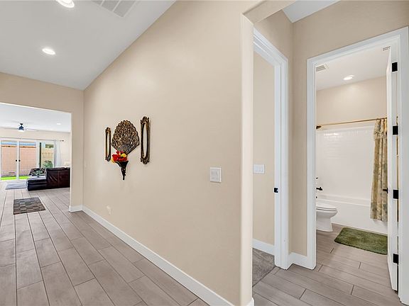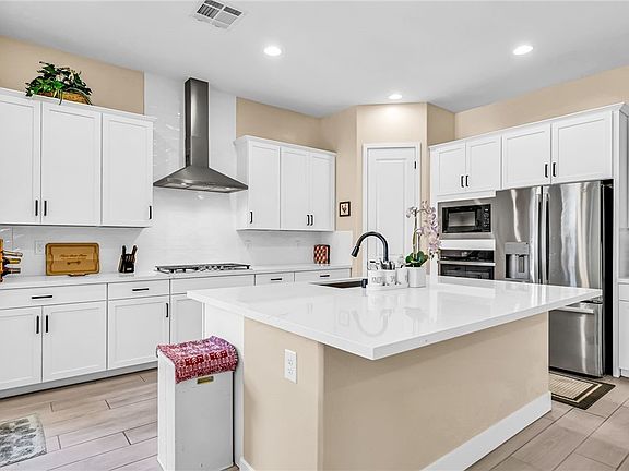 Home sweet home! This single story residence features 3 spacious bedrooms and 2 modern style bathrooms. Curb appeal with 2 car garage and paver driveway. The inviting interior has tons of natural light, neutral designer paint, window coverings and modern look tile flooring. The gourmet kitchen features an oversized quartz island counter top, sleek white cabinetry, neutral style backsplash and stainless steel appliances. Primary bedroom includes dual vanities, sleek and spacious walk in shower, and a generously sized walk in closet. Step outside to a relaxing backyard featuring extended covered patio, pavers and turf for easy maintain private space. Make this gem yours, schedule your showing today!