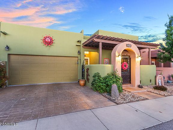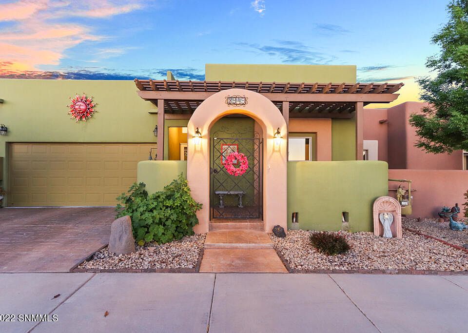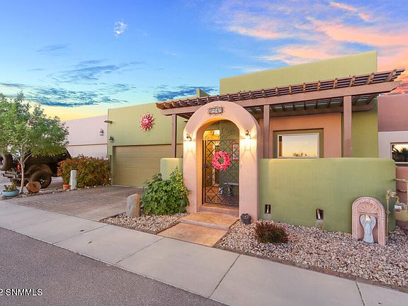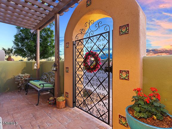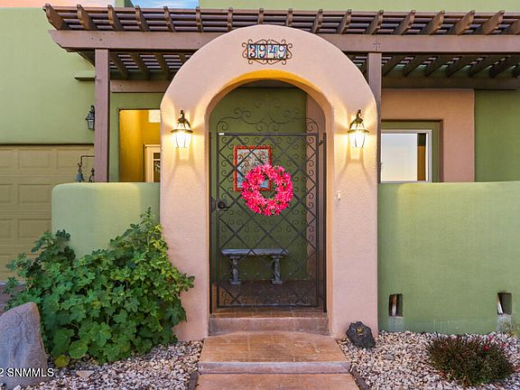 This 2 bedroom townhome has two 3/4 baths, plus an office / flex room and is located in a 55+ gated community. There is a walking path, dog park, community pool / spa, clubhouse and more! This home features a gated front courtyard with pergola and East facing backyard with amazing views of the Organ Mountains. It has an open floor plan with high ceilings and lots of natural light. The kitchen has stainless steel appliances, a full pantry, quartz countertops and wood look porcelain tile throughout.