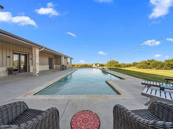 This is a one of a kind gem. Views are unmatched. Remarkable working ranch and gorgeous home. Recreation, hunting, cattle ranching and other income production. 3-BR, 4-BA luxury home. Can use as short-term rental. Great investment income. Main master bedroom has cedar walk-in closet, walk-in shower, soaking tub, bidet and kitchenette. The second BR with shower and double vanity & kitchenette. The upper BR has sleeping for 3-6. Two tankless HW heaters, indoor storm cellar and a hidden room. Outside amenities: heated pool, outdoor kitchen, built-in fridge, sink, and storage. Mature oaks throughout ranch second to none. Abundant wildlife and fishing. Cross fenced, working pens, 3 stock tanks, improved grass. Metallic barn with interior for living quarters, central AC, bathroom and septic. Needs finishing, but is livable. Lean-to (1,600 SF) for equip. 3 RV hookups. Open pasture and wooded areas. Piped water outlets at numerous places. 2 septics. 4 water meters. 3 electric meters. Must see!