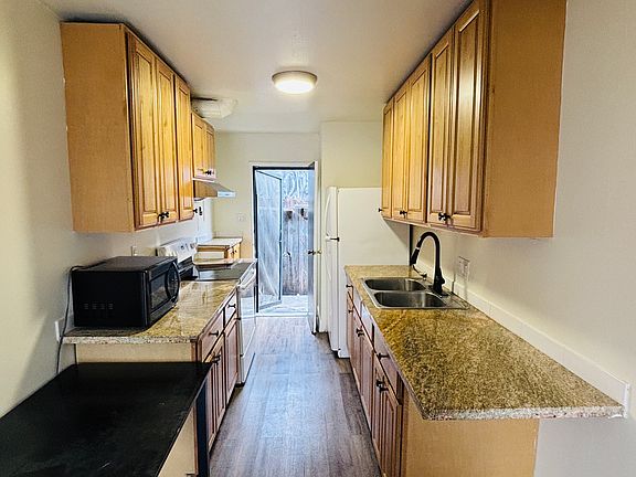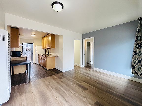 Remodeled duplex style apartment. Updated kitchen, bathroom, flooring, and paint. Small private rear yard. Shared laundry room with 9 other units. Outside tandem parking for 2 cars next to unit.