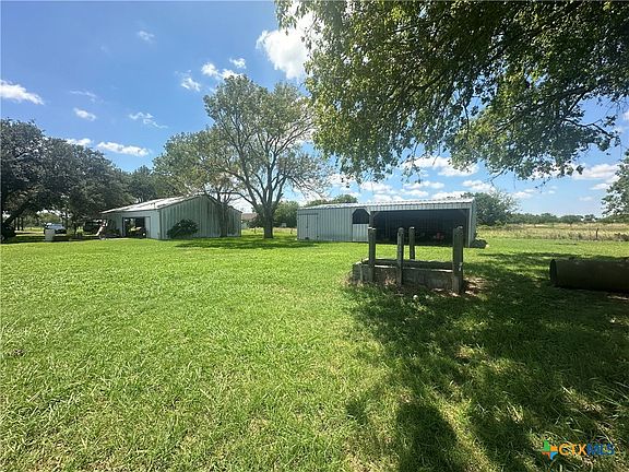 Country living with beautifully manicured 10 AG EXEMPT acres to transfer and only 10 minutes from town! 3 bedroom 2 1/2 bath with custom built ins throughout. 1400 sqft. shop with 2 overhead doors, office and bathroom. Pole barn great for 4H-FFA projects, or extra storage. HVAC replaced 2015, roof replaced after hurricane Harvey (2017). Water heater 2021 and owned water softener. This 1970's home still holds all its nostalgic flare and awaiting your personal touches. Call for a private showing today!
