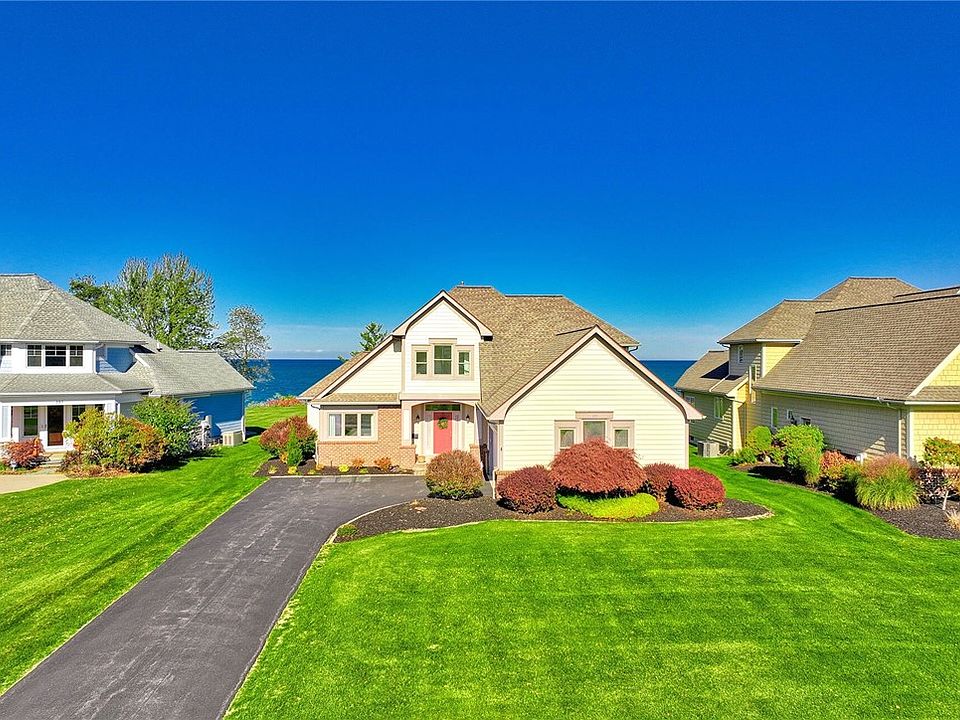AVAILABLE NOW FOR THE FIRST TIME! *No Delayed Negotiations!* PRIME WATERFRONT COMMUNITY — ENDLESS LAKE VIEWS! This home sits elevated on the bluff in Webster’s EXCLUSIVE COASTAL VIEW NEIGHBORHOOD, offering the LUXURY of WATERSIDE LIVING with UNOBSTRUCTED LAKE ONTARIO VIEWS plus nearby COMMUNITY ACCESS TO THE SHORELINE (4 houses away) & FOUR-MILE CREEK! enjoy kayaking, fishing, or walks by the water *WAKE UP TO THE LAKE! The FIRST-FLOOR PRIMARY SUITE features A SOARING TRAY CEILING and Expansive Windows that CAPTURE THE VIEW the moment you open your eyes! The OPEN-CONCEPT Kitchen and Dining area feature Hardwood Floors and are wrapped in Windows overlooking the Lake, with Quality Cabinetry, Granite countertops, Tile backsplash, Center island Breakfast Bar, and Walk-in Pantry * Anchoring the home is the GREAT ROOM W/VOLUME TRAY CEILING, Gas Fireplace, Built-in cabinetry, and a SHOWSTOPPING WALL OF WINDOWS! First Floor DEDICATED OFFICE/4th bedroom with sliding pocket doors and built in desk offer the perfect work-from-home setup — or could easily function as an additional bedroom or quiet flex space. A MUDROOM ENTRY off the garage includes FIRST-FLOOR LAUNDRY * Upstairs are two generous bedrooms and a full bath with tub/shower combo * The full unfinished basement offers endless potential, and a LARGE COMPOSITE DECK leads to a LEVEL BACKYARD overlooking Lake Ontario! This UPSCALE COMMUNITY is filled with HIGH-END HOMES and SCENIC open spaces. Nearby, you’ll find Waterfront Dining, Hiking and Parks! Webster's Sandbar Park/Irondequoit Bay and Ontario's Bear Creek Harbor are approx. 10 minutes for boating and recreation *A RARE opportunity to experience Luxury Lakefront Living in one of Webster’s Most Desirable Neighborhoods!