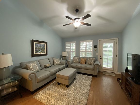 One level---no steps--- 55+ Community----Convenience.... Minutes to any grocery, restaurant, drugstores ,shopping you may need. Move in sit your furniture down condition, neutral colors, Real oak hardwoods in LR, Den area and Kitchen, carpet in bedrooms, spacious laundry area with cabinets (10x06 ) off 2 car garage with pull down attic storage. All appliances to remain, granite countertops ,tile backsplash upgraded well cared cabinetry with under cabinet lighting. Plantation shutters thru out home, upgrade exterior doors. This unit backs to a private area with no thru traffic Amenities include club house ,pool, exercise facility ! Buyer and Buyer agent to verify any pertinent information deemed important to buyer . This one is a must to show !!....