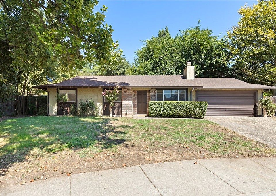 Tucked away at the end of a quiet cul-de-sac in North Chico, this charming 3-bedroom, 2-bathroom home offers style, warmth, and all the features that make everyday living a pleasure. This home already features some thoughtful updates, but there’s still room to bring your own vision and style to life. As you step inside, you’ll be welcomed by an open and inviting atmosphere, highlighted by beautiful flooring, lightly painted walls, and a bright living room anchored by a classic brick fireplace—the perfect centerpiece for gatherings or cozy nights in. The kitchen makes everyday meals a breeze. Featuring ample cabinetry, plenty of counter space, stainless steel appliances, and a smooth electric range, it’s fully equipped to handle all your cooking needs. The adjoining dining area offers a wonderful spot to enjoy family dinners or casual get-togethers with friends. After a long day, retreat to the primary suite where relaxation awaits. This private space includes a generous walk-in closet and an en suite bathroom complete with a roomy vanity and a large walk-in shower. Two additional guest bedrooms provide versatility for family, guests, or even a home office, while ceiling fans throughout ensure comfort all year long. Outside, the expansive backyard sets this property apart from the rest. This blank slate offers room to create your dream outdoor space, the possibilities are endless—design a patio for entertaining, plant a lush garden, have your own chickens, possible mother in law unit, or even put in a pool for summer fun. With its quiet location, quick access to HWY 99, and a long list of desirable features, this home offers everything you’ve been looking for. Don’t miss the opportunity to make it your own!