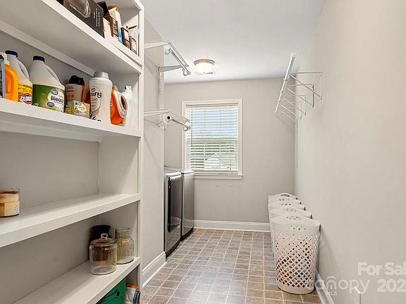 Upstairs, is a spacious laundry room w/ built-in storage & shelving. Primary bedroom boasts an accent wall, and the en-suite bath has a new shower head and faucets.