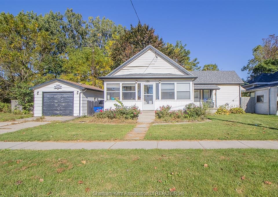 Welcome to 395 Park Street a charming and cozy bungalow full of character, located in a mature Chatham neighbourhood. Step inside to an inviting open-concept layout that feels bright and spacious, with a comfortable flow from the living area to the kitchen and dining space. The kitchen, updated about three years ago, features an island that’s perfect for cooking, gathering, or enjoying your morning coffee. The bedroom offers a peaceful retreat, while the large bathroom includes a relaxing soaker tub and a cleverly tucked-away laundry area for added convenience. Enjoy the sunshine from the cheerful three-season front porch, or unwind on the large back deck overlooking a generous yard — great for gardening or spending time outdoors. The roof was replaced approximately seven years ago, and the furnace and A/C are about nine years old. The hot water tank is a rental. Windows have not been updated. Being sold in as is condition, this home offers warmth, functionality, and plenty of potential to make it your own. Conveniently close to parks, schools, shopping, and local amenities. Completing the property is a detached garage that offers valuable storage and workspace options, ideal for parking or personal projects. 72 hours irrevocable on all offers.