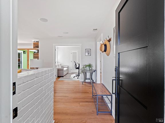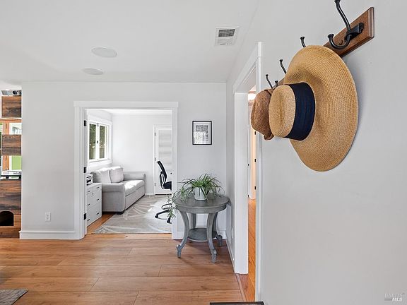 Discover the allure of living in Marinwood at 395 Peachstone, a single-level residence blending modern amenities seamlessly with the natural landscape. The chef's kitchen w/ quartz kitchen island creates a beautiful focal point, bathed in natural light from a large panel skylight, flowing easily into the living space, accentuated by Oak flooring and a charming courtyard patio. Entertain indoors by the gas fireplace with integrated sound system, or in the outdoor kitchen under pergola with shades, lights, and gas BBQ. Updated plumbing, electrical, landscaping & irrigation, this home embodies both sustainability and style. Conveniently located near Marinwood Cmty Center, plus top schools, it offers an ideal balance of comfort and convenience. Recently updated from top to bottom with a new roof with solar, new HVAC, new windows and sliding French Doors, The spacious three bedroom plus office/ flex space floor plan is perfectly laid out for entertaining. Two full baths, fully remodeled, flank the two renovated rear bedrooms. Custom shed on a raised deck could be a private space for office/ workout or storage. Amazing walkable location, stroll to the market, or schools, or bike to the hiking trails. This jewel box has been well-maintained and now awaits its new owner! Welcome Home!