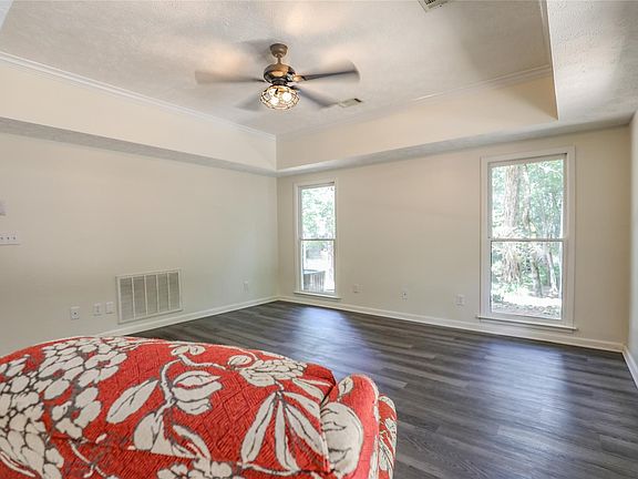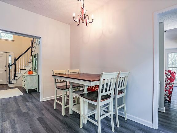 This beautiful 2 story brick home on 1.6 acre wooded lot sits stately on a hill at the end of the street waiting for a new owner to make it home. As you enter the grand foyer, the living room and dining room are to the right with a wall of windows overlooking the front yard. Freshly painted black and white eat in kitchen with granite counter tops and tons of cabinet and counter space. Downstairs also features a separate den/entertaining space with a fireplace, bar area and game storage space. The back of the house has 3 French doors that open to the deck and fire pit area. Wooded area and creek beyond host a ton of wildlife. Sit here in the mornings with your coffee and watch the deer pass through. Upstairs houses a nice master suite and 2 guest rooms with a hall bath. New paint and flooring throughout the house. Showings by appointment only.