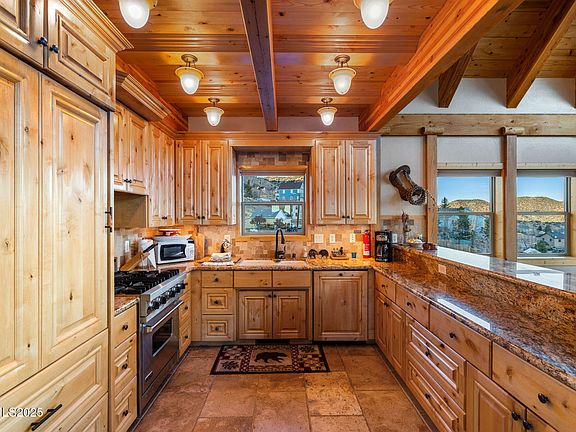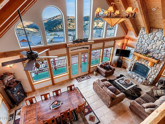 Come experience the best of Virginia City living — where timeless craftsmanship meets unparalleled views. Newer construction home and AMAZING views located in downtown Virginia City. Thoughtfully designed and masterfully crafted, every detail of this home exudes quality, comfort, and charm. The feel of a log cabin once you step inside will give you all the feels of a mountain retreat. The open great room with soaring ceilings is the heart of the house. Discover the chef's kitchen with custom appliances, pull-out shelves and breakfast bar which blends seamlessly into the living and dining room with a wall of rock spanning floor to ceiling around the cozy gas-log fireplace. Through the massive, custom windows are majestic views East towards Sugar Loaf Mountain all the way through Six Mile Canyon! Upstairs is the primary loft suite with plenty of room, a full bathroom with shower, and a claw-foot tub situated perfectly to soak in the mountain views. On the lower level, enjoy entertaining friends and family in a game room with wetbar, TV, and pool table, two more bedrooms, laundry room and a full bathroom with a TV built into the steam-sauna shower! This home is perfectly located one block from all the action on C Street and easy to walk to all the local events and entertainment. Whether you're relaxing by the fire, enjoying the sunrise from your private balconies, or exploring the nearby shops and historic landmarks, this property offers the perfect balance of mountain serenity and small-town charm. The vacant lot next door with utilities already on site is available to purchase separately and could easily accommodate a garage and/or possible ADU.