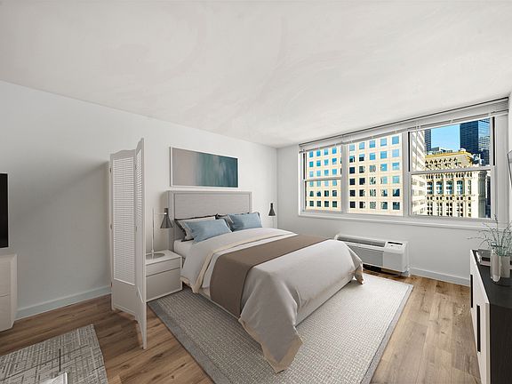 Welcome to this spacious Studio with 1 bathroom, featuring a West-facing orientation that provides stunning views of the Hudson River. This unit features an open kitchen with quartz countertops along with all of our newest renovations including hardwood plank floors, a renovated bathroom with subway tiles. Storage is abundant ensuring that you have ample space to organize your belongings. Just minutes away from the Brookfield Mall, Oculus, Esplanade by the Hudson River, Freedom Tower, Financial District and so much more. This delightful apartment is a must-see, offering comfort and beautiful vistas that will make you feel right at home!