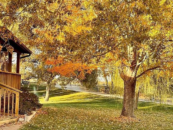 Beautifully manicured and landscaped yard filled with mature shade trees, fruit trees, and additional features including: