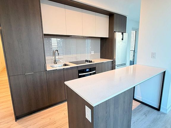 Stunning sun-filled suiteBright open-concept layoutFloor-to-ceiling windowsSleek kitchenBuilt-in appliancesElegant stone countertopsGenerous closet