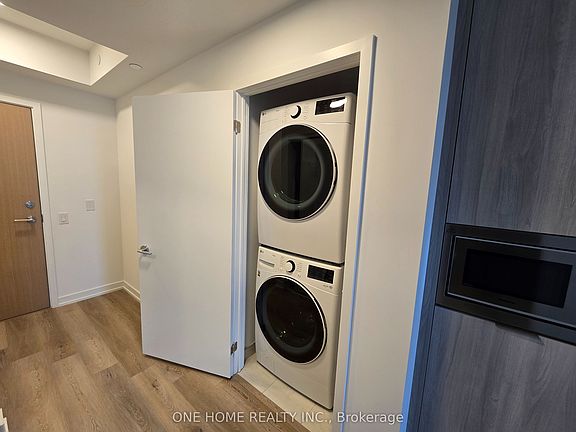 Enjoy elevated living in this 31st-floor 1-bedroom suite at The Condominiums at Square One District by Daniels, offering a functional open-concept layout of 552 sq. ft. plus a private balcony with sweeping city views, 9 ft ceilings, warm laminate flooring (no carpet), mirrored closet doors, and contemporary trim, a stylish kitchen with custom soft-close cabinetry, quartz countertops, tile backsplash, under-cabinet lighting, and efficient 24" European-style appliances, a modern 4-piece bath with integrated vanity and floor-to-ceiling tile, and the convenience of in-suite front-load laundry, individual hydro metering, Decora switches, and pre-wired cable/internet; enjoy exceptional amenities including 24/7 concierge, a state-of-the-art fitness centre with basketball half-court and climbing wall, co-working lounge, community garden plots with prep studio, dining studio with catering kitchen, indoor/outdoor kids' zones, and a social terrace; steps to Square One, Sheridan College (HMC), Celebration Square, Kariya Park, cafes, and major transit with quick access to MiWay, GO, the Hurontario LRT, and Hwys 403/401/QEW; includes 1 underground parking space and 1 locker; available immediately .