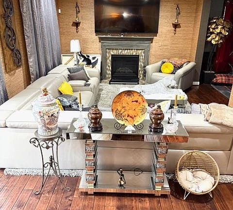 Saltwater heated poolGas fireplacePool houseBasketball courtExpansive backyard oasisFinished basementCathedral ceiling