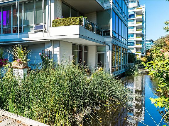 Welcome to Dockside Green, a leader in environmental stewardship and Canada’s first LEED Platinum-certified residential community. This rare garden-level condo seamlessly blends modern living with nature. Nearly 10’ ceilings frame a bright, open layout with 2 bedrooms plus office/den, 2 bathrooms, a kitchen featuring stainless steel appliances, a central island with generous storage, and a mix of bamboo & cork flooring throughout. Practical conveniences include in-unit storage, secure underground parking, and bike storage. The expansive patio feels as though it floats above the pond, creating a serene retreat just outside your door. Residents also enjoy rooftop garden beds for urban gardening. Steps to Fol Epi bakery and Caffè Fantastico, and within walking distance to Westside Village, downtown Victoria, and the Galloping Goose Trail. Dockside Green sets the standard for sustainable living with on-site energy systems, water conservation, and vibrant community design. Pets Welcome!