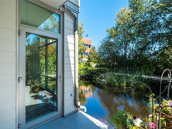 Garden-level condoOpen layoutStainless steel appliancesBamboo and cork flooringExpansive patioFloats above the pond