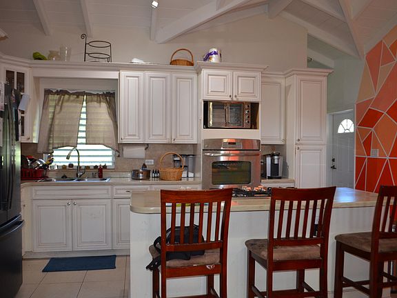 Located in a quiet neighborhood, this 3 bedroom/2 bath home includes an eat-in kitchen with Corian countertops, net metering solar power system, with 20KW auto generator; perfect for island weather. Huge yard with fruit trees along the fence line. This property offers privacy and tranquility.