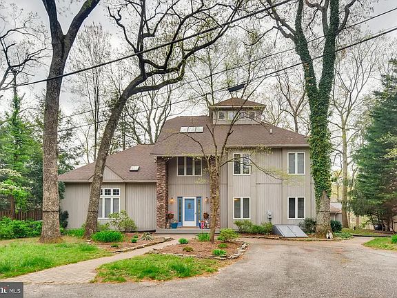 Ideal Severna Park waterfront located on a quiet cul de sac alongside undevelopable woodlands. Enjoy the serene approach to your home on the long driveway. Spacious kitchen with new granite counter tops and stainless appliances. The rear of the home is adorned with a wall of windows overlooking Old Man Creek on the Magothy. Main level features two bedrooms, soaring ceilings, stone-stacked fireplace, an open flow ideal for entertaining and French doors leading to waterfront, tiered decks. Second level family room loft overlooks the living room and offers wonderful views of the creek. Large and accommodating master bedroom suite features walk-in closet, double sinks in granite and a private deck with views. Venture up the spiral staircase to discover a unique crow's nest hideaway encased with windows. Blended families will find this home very suitable for their needs. Situated neatly below the exterior decks is a private waterside 1-bedroom guest cottage, offering a petite main deck and an upper secluded sundeck. Enjoy fishing and crabbing from your 6-foot deep water pier with boat lift. Valley Stream Road is very private with only a handful of homes, and so, is perfect for entertaining while allowing plentiful on-street parking. Oversized two-car garage in addition to generous paved areas for parking close to your home. Come preview this beautiful waterfront treasure and discover all that it has to offer.