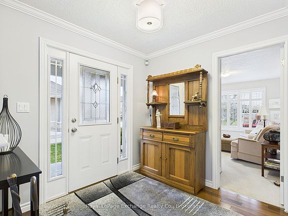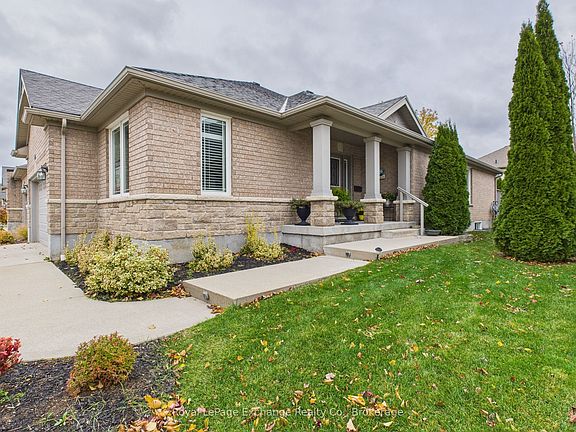 Exceptional quality and open space living can be yours in this beautifully appointed 2 bedroom condominium with full basement. Designed for entertaining, this home features rich walnut flooring and open concept kitchen, living and dining room space. The galley kitchen overlooks the dining and living area and has a walk in pantry for all your cooking needs. Enjoy the living room with tray ceiling and relax on the beautifully landscaped private rear patio. The front bedroom is currently a tv/den room flooded with natural light from the south facing windows complete with California shutters. The spacious master bedroom has his and hers closets as you enter the lovely 5pc ensuite. The unfinished basement has had a large storage closet built and the rest can be designed to fit your needs. Complete with a double car garage and private double concrete driveway, this perfectly located home can by your oasis for care free living!