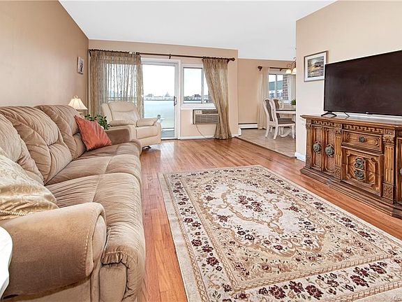 Expansive HIGH floor corner 2 bedroom 2 full bath unit. BALCONY & VIEWS of Long Island Sound!! Huge sunny living room, dinning area, kitchen, large MASTER bedroom/MASTER bath, unusually large 2nd bedroom & 2nd hall bath. Unit boasts ABUNDANCE of CLOSETS and HARDWOOD FLOORS! Enjoy relaxing on your brand NEW TERRACE as you watch the sunrise or behold the sunset with lovely views. RENOVATED BUILDING, ALL NEW lobby, hallways, elevators, laundry & PLENTY OF PARKING for your visitors! Enjoy an evening relaxing in the rec room or cool off in the outdoor POOL. Barbecue & entertain family & friends on PATIO with comfortable seating & multiple GAS GRILLS. Super/porter on site. Walk to train, shopping & restaurants. Maintenance includes heat, hot water, taxes & building amenities. Additional generous STAR deduction available. Possible CREDIT to make your custom renovations. UNDER PRICED unit can be tailored to your needs. Some TLC brings this gem an increased value of 60K! MOTIVATED seller!