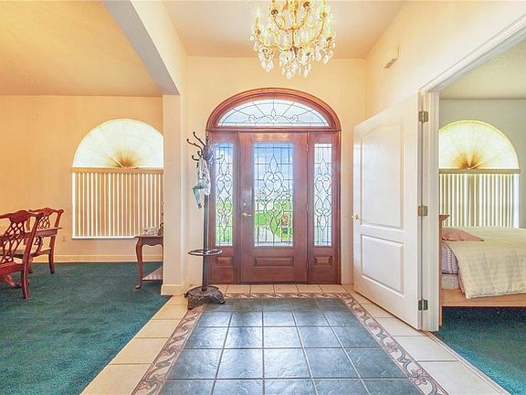 Lakefront home on 3.79 acres of land! As you enter the property, you are welcomed by a circular drive with an additional side driveway that leads directly down to the lake, providing private lake access. The entryway features custom see-through wood and glass doors that open into a foyer with tile flooring. From there, you’ll find a formal dining room that flows seamlessly into a formal living room, perfect for entertaining. The spacious kitchen offers a large island, plenty of cabinetry, a built-in desk, and a stovetop for cooking. A bar area with seating for multiple barstools and a cozy breakfast nook with beautiful lighting overlook the family room, complete with a fireplace. French doors from the living room lead out to the screened back porch and lanai, ideal for relaxing or gatherings. The primary master suite is expansive, featuring a luxurious bath with dual sinks, a walk-in shower, and a separate garden tub with Jacuzzi. A second master bedroom shares the master bathroom and offers French doors leading to the lanai. Additional bedrooms and baths are well-appointed, offering comfort and space for family or guests. This home also includes a den with a second fireplace, perfect as an office, trophy room, or hobby space. Outside, you’ll find a fenced yard leading to a large workshop. Attached to the workshop is a private mother-in-law suite with its own entry, offering a one-bedroom, one-bath apartment complete with a full kitchen. This setup is perfect for extended family, guests, or rental opportunities. Two carports provide ample extra parking. This lakefront property is perfect for anyone seeking privacy, hobbies, or a workspace at home, with room for boats, RVs, or equipment. Centrally located near major highways and just a short drive to Central Florida’s theme parks and attractions, this home offers the perfect balance of peaceful lakefront living and convenience.