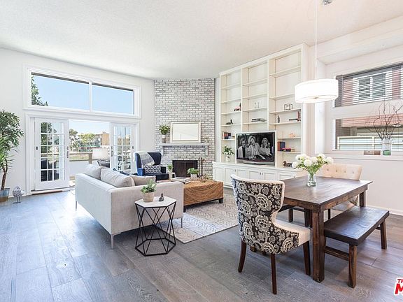 Charming, remodeled & sun-washed TOWNHOUSE in prime MDR w/head-on lagoon views & located across the street from the beach path - just minutes from ocean, marina & shopping. W/soaring high ceilings, lrge windows & multiple balconies, this corner unit offers brilliant natural light, impressive volume & space rarely available. First flr: open liv/din rm w/prominent fireplace, wet bar & lrg balcony w/views - ideal for BBQs & entertaining, updated modern kit, adj breakfast rm, powder rm & hrdwd flrs. Upstairs: oversized master ste w/vaulted ceilings, lrg view balcony & completely remodeled en-suite master bath w/dual sinks & concrete flrs. 2nd bed suite features private bath & balcony. Also includes study nook, new lighting, plantation shutters, 2 SxS parking, inside laundry & extra storage. Situated in the renovated & gated Marina Strand Colony w/pool, spa, sauna & guest parking. An exceptional turn-key opportunity, offering one of the best locations & layouts in the complex w/superb style