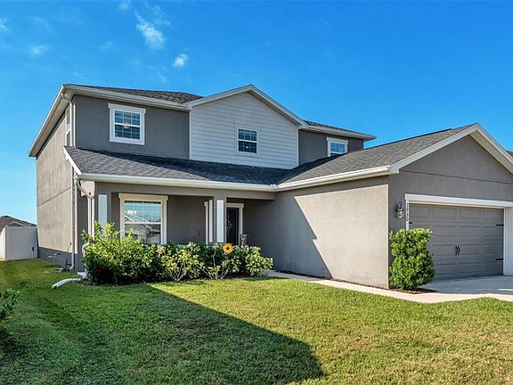 It's not very often that a home with SIX bedrooms comes to the market! With that being said, I am happy to introduce you to this beautifully designed 6-bedroom, 3.5 bathroom home. This home offers plenty of space for large families or those who love to entertain. You will love the curb appeal offered here and how cozy the front porch feels. Enjoy spending time here in your rocking chairs while reading a book or enjoying your morning coffee. Upon entry, you'll find a bright and welcoming atmosphere that features high ceilings and brand new, durable laminate flooring with a wood-look that extends from the dining room to the living room, kitchen, dinette, and staircase. Convenience meets function with a mud room, perfect for keeping shoes, bags, and daily essentials organized. Also located on the main floor is a half bath, which provides accessibility and convenience for guests while they visit. The open-concept living area, kitchen, and dining room boast tons of natural lighting- ensuring you always feel comfortable in this space and that your guests always feel welcomed. The kitchen provides ample counter space and storage, perfect for cooking and for gathering. The primary bedroom is located on the first floor and features brand new carpeting and an en-suite bathroom with a double sink vanity, private water closet, HUGE walk-in closet, plus an additional linen closet. Upstairs, you'll find a spacious loft and five other generously sized bedrooms. A Jack and Jill bathroom conveniently connects two bedrooms- ideal for family or guests. Step outside through the french doors to enjoy the covered and screened-in porch, perfect for relaxing or hosting gatherings while overlooking the backyard. The backyard is completely fenced in, and the backyard playset is also included as well if you'd like! Other awesome features of this home include: blinds throughout, ceiling fans in every bedroom, rain gutters, irrigation system, and in-wall pest system. With its thoughtful layout and spacious design, this home offers both comfort and functionality for everyday living. The community of Towne Park Estates Phase 2 features sidewalks for taking strolls, TWO community pools, playgrounds, benches along the lakes/ponds, a clubhouse, and even… a DOG park! Towne Park Estates is a highly desirable community in a great location! It is about 2 miles from Publix and close to Lakeside Village as well. Residents of the community always look forward to the annual SUN 'n FUN airshow that takes place across the street. Being able to watch the airshow in the comfort of your own yard is definitely a major perk that always brings the community together. Call today to make this house your home!