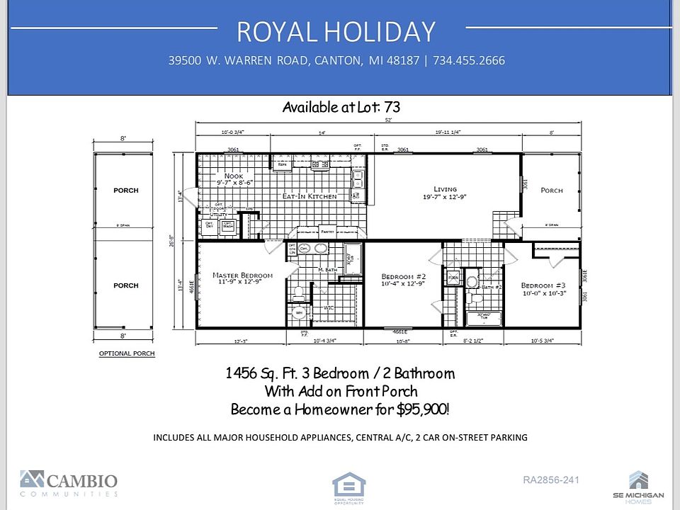 Picture yourself in a great neighborhood in a growing community filled with plenty of ways to work and play. That s Royal Holiday, a well-maintained, professionally managed manufactured home community designed around resident's lifestyles.Royal Holiday is offering a 2021 model year 3 bed/2 bath 1456sq. ft. home. Call today to schedule a viewing of this home. Ask about our special move-in incentives!