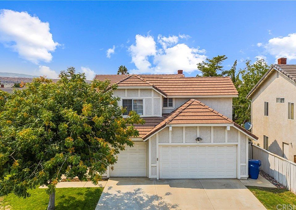 West Palmdale's finest, amazing curb appeal, enter your double doors to a formal entry, grand staircase, a formal dining area. Step into your remodeled cooks kitchen, newer custom cabinets and granite counters. - WOW, attached is an informal dining area and a large family room with a fireplace. Downstairs has a bedroom, 3/4 bathroom and indoor laundry. Upstairs has a huge master suite with a balcony, huge master bathroom with a tub and separate shower, double vanity and walk in closet. Title states 3 bed, this is a 4 bed with a huge bonus room that could be bedroom #5! Step into your entertainers backyard with large patio area which includes a garden area with a pomegranate tree, apple tree, grape vine and a pear tree! This home even has a whole house carbon block water filtration system!