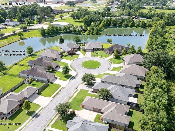 *Open Saturday January 31st from 1-3pm!* Welcome to this beautifully upgraded 3-bedroom, 2-bath home located in the highly sought-after Prairieville school district, nestled in a perfectly manicured neighborhood with a playground, scenic lake, walking trails, and charming resident ducks. Situated on a large corner lot on a quiet cul-de-sac street, this home enjoys park frontage with the neighborhood park directly across the street. This move-in-ready home features a newer roof (only 3 years old), luxury vinyl plank and tile flooring throughout (no carpet), custom wood blinds on every window, granite countertops, stainless steel appliances with built-in microwave, and elegant Fleur-de-Lis cabinet hardware. The spacious kitchen includes a pantry, ample storage, and flows into light-filled living areas with tons of natural light. Refrigerator, washer, and dryer will remain with the home for added value and convenience. Additional highlights include a walk-through laundry room, abundant closet space, oversized carport with extra storage, backyard workshop, fully fenced yard, and extended patio space—perfect for entertaining. Exterior features include gutters and pristine landscaping, making this home truly immaculate inside and out. No flood insurance required. This property qualifies for FHA, Conventional, VA, and 100% financing through USDA Rural Development. All of this for just $275,000—an exceptional value in today’s market. Schedule your private showing today!
