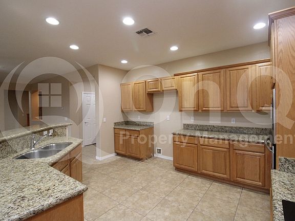 This home offers 5 generously sized bedrooms. Upstairs primary suite with full bath, walk-in closet, & private balcony access! Convenient downstairs secondary bedroom with optimal privacy. Blinds + ceiling fans! Enjoy an oversized backyard with covered patio & desert landscaping. 3 car garage! Desirable lot with N/S exposure & stunning mountain views. Seville is a well maintained community offering community pools + spa, golf course, sports courts, playgrounds, & biking/walking trails!