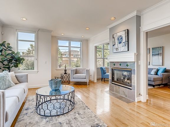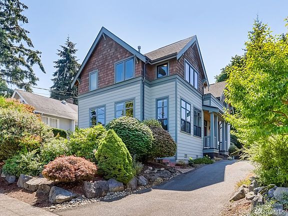 Enjoy sound and mountain views from the living room, master bedroom and 2nd floor deck. Entertain in the open living and family room, with 2-sided fireplace. Kitchen with newer stainless steel appliances, fir cabinets and large pantry. Oak hardwood floors, high ceilings and tall windows that let in great natural light. Master with walk-in closet. 4 bedrooms up. Low maintenance yard, private patio, 2-car garage. Coveted Gatewood neighborhood close to Lincoln Park, the beach, ferry and bus lines.