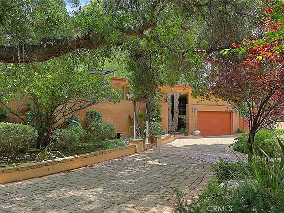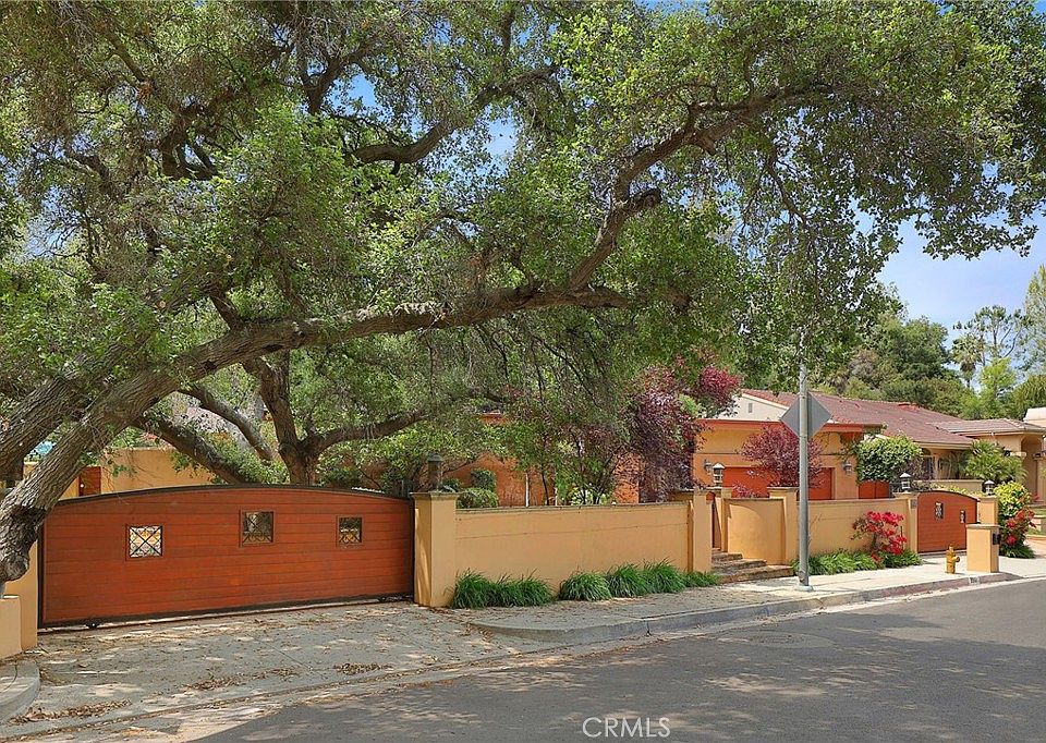 Gated Custom Built, Single story architectural mid century estate bordering Braemar Golf Course on three sides for ultimate privacy. Excudes Hollywood vibe. Located on the Quiet part of Vanalden, 2 ½ miles S. of Ventura. Solar Panels recently installed. Enclosed courtyard entry features captivating water fountain. All major rooms include wall to wall glass doors and windows taking advantage of the views of lush landscaping, towering trees, golf course, and pool connecting you to nature. In addition, high ceilings in every room. Living, Family and Primary bedroom include their own fireplaces. Family Room includes a built-in library, cabinets and wet bar. Sandblasted high beamed wood ceilings flows from exterior to interior. Updated kitchen with quartz counter tops, upgraded appliances and lots of cabinets. Sensational rear yard highlighting Redwood deck providing a picturesque view of the golf course, great for entertaining or enjoying the natural surroundings. Upgraded Salt water, Pebble Tec pool. Lots of yard space with possible room for ADU. Hiking trails nearby. This masterpiece designed home with its harmonious design, luxurious features and connection to nature is a one of a kind coveted retreat. Room for multiple cars behind the gates. Seller will entertain financing!