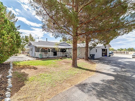Correct square footage is 2,131 in this perfect blend of comfort, space & functionality in this beautiful Pahrump, NV home situated on a sprawling 1.1-acre lot with no HOA and gorgeous mountain views. This well-maintained property offers 2,131 sq ft of living space with 3 beds, a den & 2.5 baths. The kitchen features Formica countertops, stainless steel appliances, large island, charming garden window & abundant storage. Enjoy energy efficiency & peace of mind with fully paid solar, smart home features including security cameras, smart thermostat & ceiling fans. Comfort is prioritized with high-affection HVAC systems, upgraded bathrooms & even air conditioning vented to the garage. Multiple attached porches & covered back patio, ideal for relaxing while taking in breathtaking views. Mature landscaping creates a private & serene outdoor retreat, while multiple sheds & 2-car garage provide ample space. With thoughtful upgrades, open living areas & expansive outdoor space.
