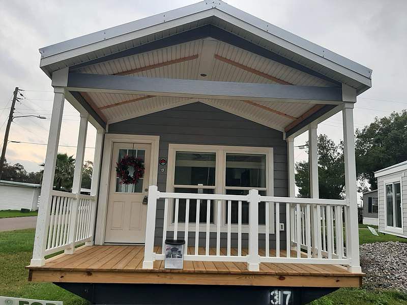 The New Kid on the Block! The Newest Park Model has arrived and it is beautiful! This cottage style home will be ready soon and will include a carport! Plenty of style and upgrades abound throughout this beautiful quality home with recessed lighting and soft close shaker cabinetry. The home packs a punch and lives large. For convenience the home includes washer dryer hookups inside the home and has a dishwasher to make clean up easy. The kitchen also sports a pantry and a full size gas stove! The large bathroom has a step in shower with beautiful tile surround, transom window, a handheld and rain head shower. Plenty of natural light to brighten the day with 2 sliding glass doors. Enjoy easy front porch living in this amazing home. Stop by and see the newest 2023 Park Model! Enjoy the tropical surroundings in a low-maintenance lifestyle and convenient access to all there is to see and do in this idealistic neighborhood. The community features a pool, planned activities, a newly refinished clubhouse with new kitchen, game table, pool table and darts. The community also features shuffleboard, fire pit, patio area and professional grill. As a land lease community, while you would own your home itself, the land it resides on is leased. Lot rent is $500 per month (care of common areas and lawn mowing)