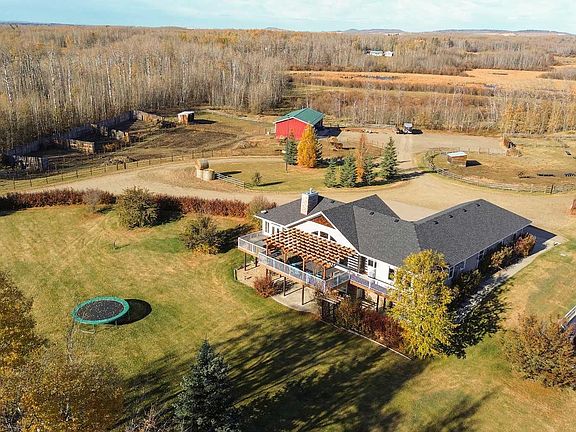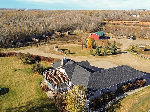 Enjoy breathtaking privacy from this 8.77-acre property, perched just 2 minutes northwest of Sylvan Lake’s edge. An acreage masterpiece equipped with an exceptional walkout basement, where you can enjoy evening fires or endless fun in your beautifully landscaped yard. Need garage space? There’s a double 24’x30’ attached heated garage & a 60’x30’ workshop (barn) equipped with 100-amp power, hay & tack storage, perfect for all your recreational & storage needs. The property is a haven for horses with multiple pens, corrals, three full-size horse shelters, a waterer, & a full riding arena. A gentle curve on the gravel road (RR 31A) welcomes you onto an inviting driveway, which brings you into a large eye drop courtyard at the front of the home, well thought out & meticulously landscaped for those who love the outdoors. Head inside to explore what this lovely family home has to offer: over 3,400 sq ft of living space, 4 bedrooms, 3 full bathrooms, a master suite fit for royalty, & an open-concept floor plan for entertaining. The kitchen boasts bright east-facing windows, granite countertops, stainless appliances, a tile backsplash, & a stainless pull-up eating bar. Beautiful built-ins & impressive woodwork throughout sit atop beautiful ceramic tile at your feet. The bright living space features a beautiful gas fireplace with a stone mantle & raised hearth, plus incredible west-facing windows, perfect for those sunsets. You’ll find great gathering areas on the large rear deck or down below on the patio, overlooking the vast green grass; bring the kids & come enjoy the peace of country living. A separate family room makes movie night a breeze while providing ample room for the dining area. Retire for the evening to your own private wing, comprised of the master suite, complete with French doors to the hot tub, a spacious 5-piece ensuite, a walk-in closet, dual tile vanities, a steam shower, & a large jet tub. The main-floor laundry room offers convenience, while there’s an option to move laundry downstairs; do not miss the mud room, a place to catch all those shoes as the kids come in. The lower level welcomes you to a massive family room, three more bedrooms, & large storage rooms. Double doors provide quick access to the backyard & covered patio. Exterior finishings include a mixture of stucco & cedar shake features. Well maintained throughout, it’s heated by a top-of-the-line boiler system for in-floor heat, providing comfort & efficiency during those colder winter months. Features include an option for a 5th bedroom on the main floor, new shingles 2025, rough-in for AC, HRV installed, toolshed, dock for the pond, yard lights, a sports court (including basketball hoops), & a full-sized volleyball court (including net & rounded steel bordering). Enjoy a variety of mature spruce, maple, & birch trees. A school bus stops right at your driveway, it’s a 5-minute gallop to the lake, & only 1.75 hours to Calgary. The adjacent 141.25 acre property is also for sale - A2256388.