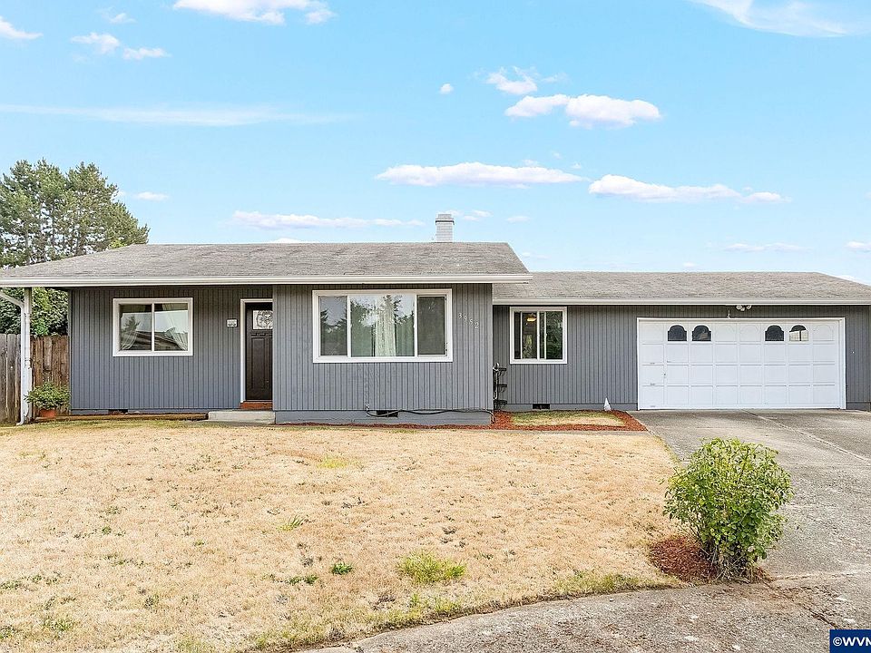 Charming 3 bedroom, 1 bathroom home with 1,034 sq ft of comfortable living space. Tucked away in a peaceful cul-de-sac, this property offers a large yard perfect for gardening, entertaining, or play. The inviting layout flows easily, while a spacious 2-car garage provides ample storage and convenience. Enjoy the quiet neighborhood, close to everyday amenities yet offering a sense of privacy. A wonderful opportunity to make this well-cared-for home your own.