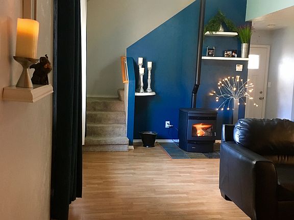 This beautiful 3 bedroom, 1.5-bathroom townhome is located on a corner lot and is conveniently located in the center of the Mendenhall Valley. There have been extensive upgrades throughout including metal roof, flooring, light fixtures, bathrooms, and kitchen counters. The replacement of windows, doors, and the addition of insulation brought the home up to 4+ Star Energy Rating. A pellet stove combined with electric baseboard heat makes for a cozy and efficient home. The 1 car garage has a lofted ceiling with a great deal of extra storage built in. Outside the home features additional parking for cars, boats, or RVs. The large, fenced yard provides a great area for pets or children to play. The driveway to the adjoining townhome is on the opposite street so you will never know that the homes are attached. All this and views of Mt. McGinnis and the Mendenhall Glacier from the master bedroom.